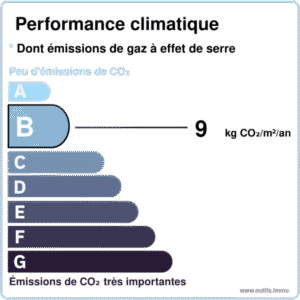 🌍 Émissions de GES : B (9 kg CO₂/m²/an)