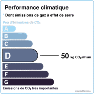 🌍 Émissions de GES : D (50 kg CO₂/m²/an)