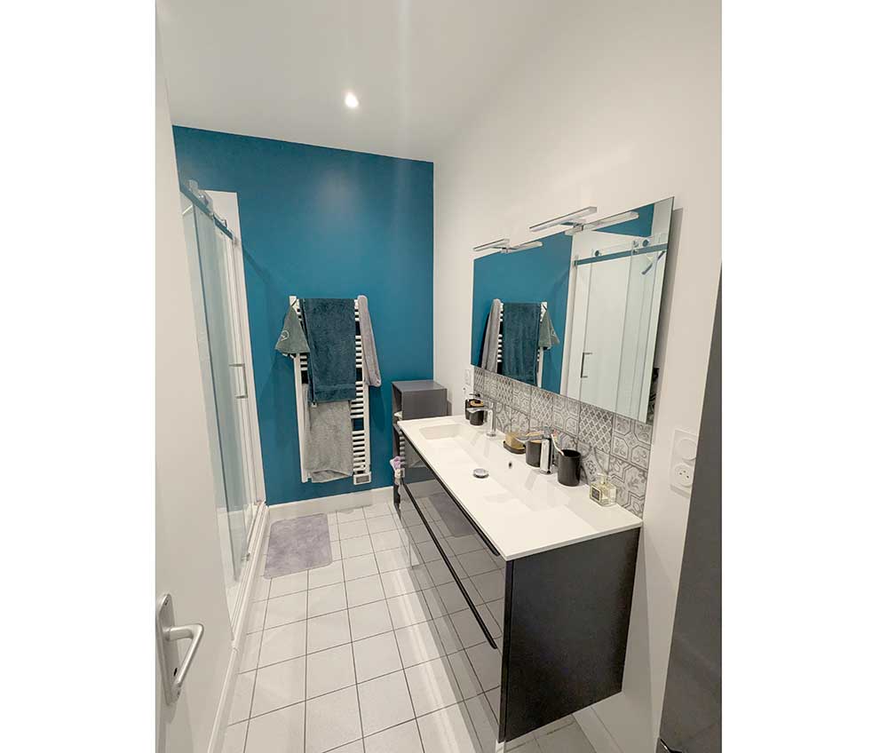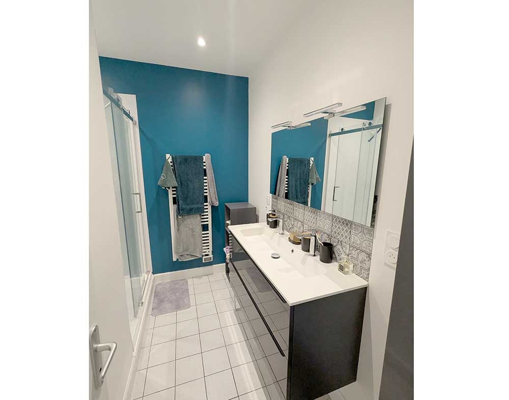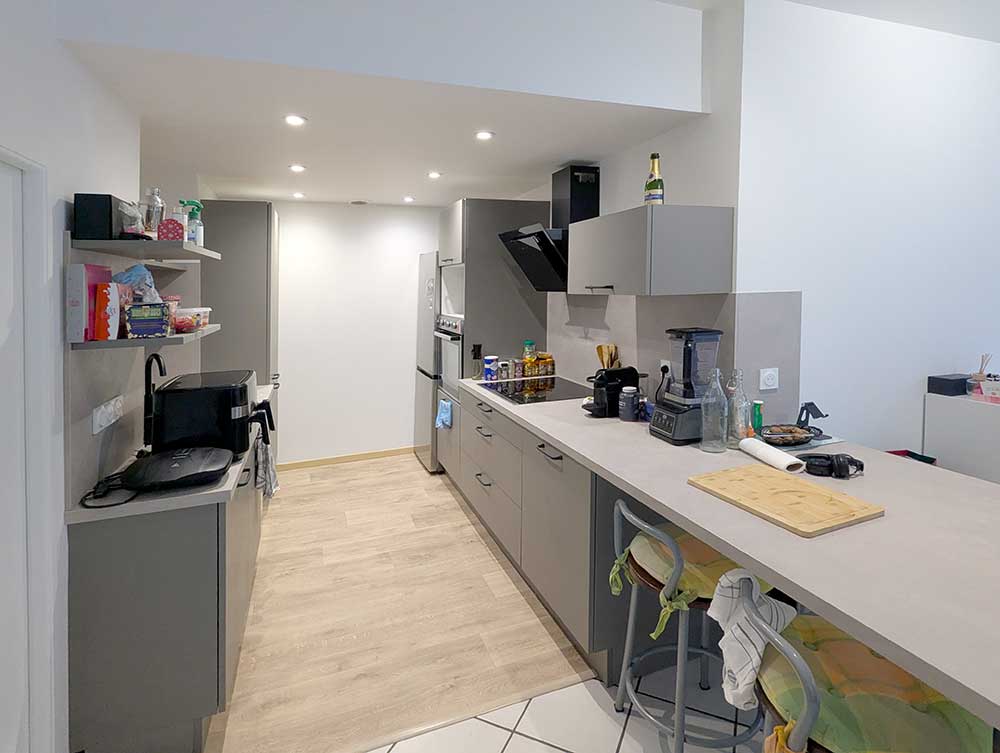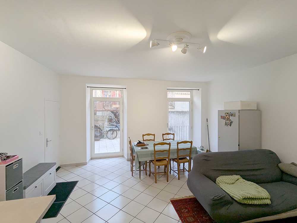 Il se compose d’une entrée desservant une spacieuse pièce de vie lumineuse avec accès direct à une terrasse commune, idéale pour profiter des beaux jours. La cuisine, moderne et équipée, est ouverte sur le séjour et apporte confort et convivialité.