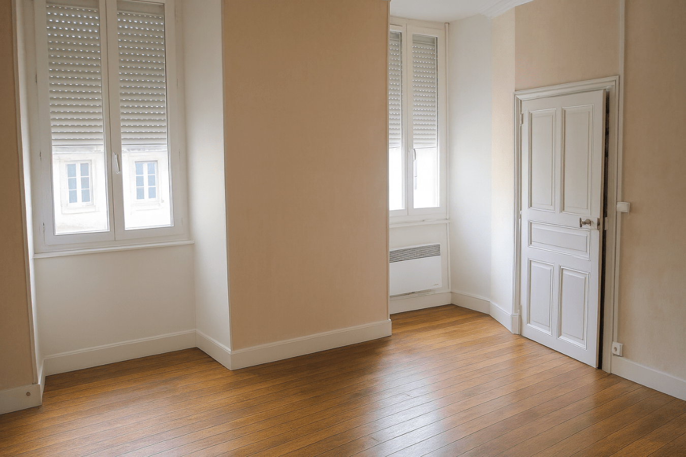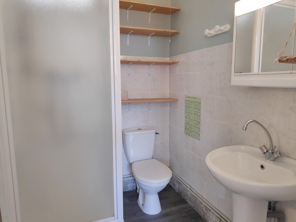 L’appartement se compose d’un couloir, d’une cuisine, d’un séjour, de deux chambres, ainsi qu’une salle d’eau avec WC.