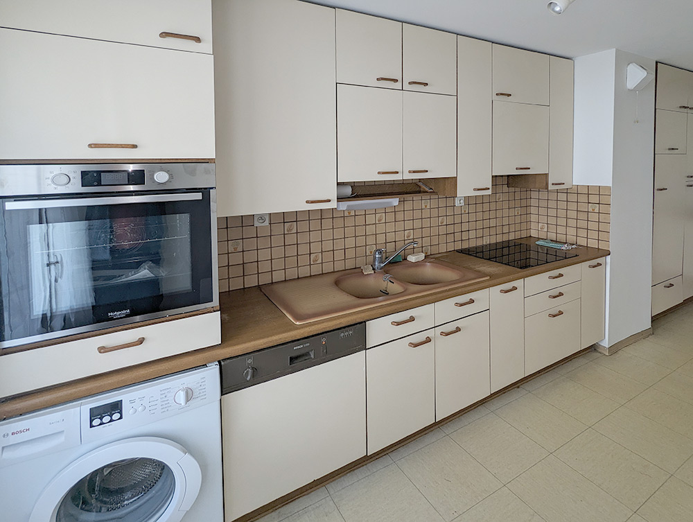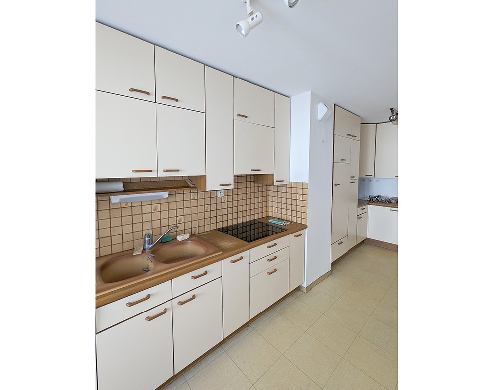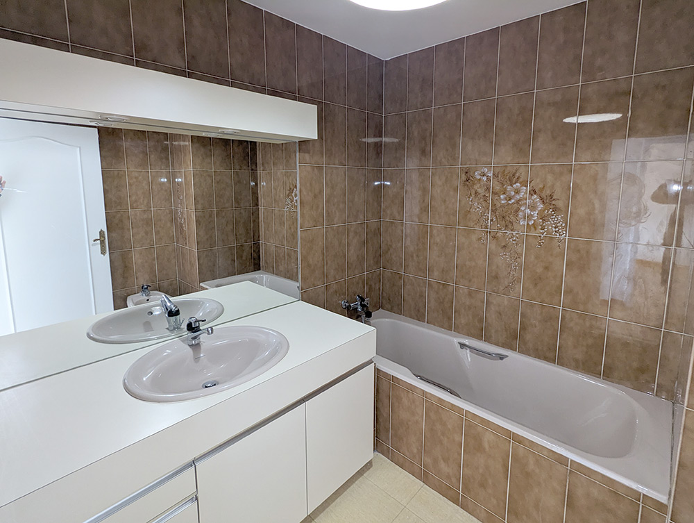 Ce vaste T4 se compose d’une grande entrée avec un cellier desservant un séjour et une cuisine équipée qui donnent sur le balcon principal. Une chambre et une petite salle d’eau. De l’autre côté, deux chambres qui donnent sur un balcon, un WC séparé et une salle de bains.