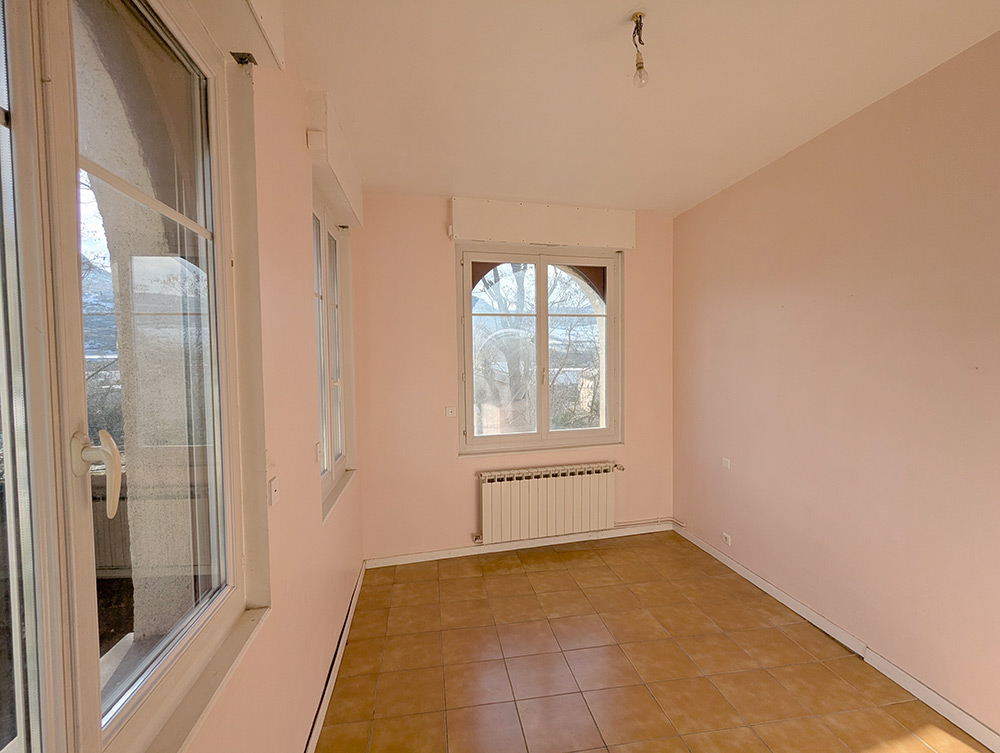 DĂšs lâentrĂ©e, la maison offre un agencement pratique des piĂšces : un couloir mĂšne Ă trois chambres (dont deux donnant sur un petit balcon), une salle de bain avec deux vasques, un WC sĂ©parĂ©, un sĂ©jour/cuisine ainsi quâune chaufferie.